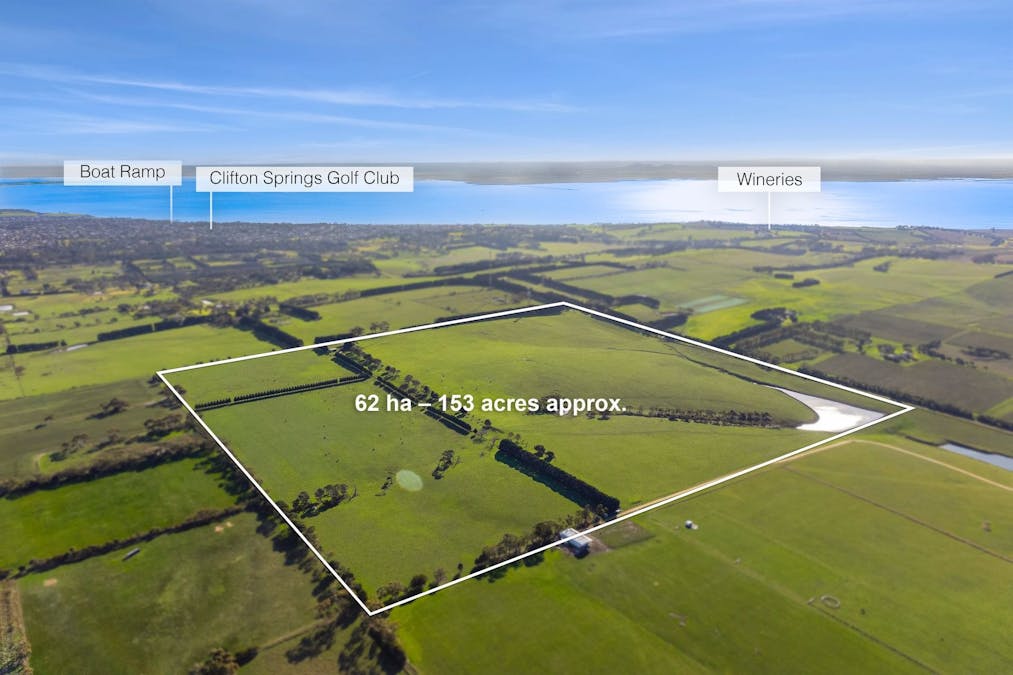 Showcasing breathtaking panoramic bay views from Mornington around to Point Nepean, Port Phillip Heads and Bass Strait this exceptional 62 ha – 152 acre approx rural holding presents a rare blank canvas to design and build your dream home. Set within a picturesque landscape of rolling green hills and improved perennial pasture, this is an extraordinary opportunity to establish a unique rural lifestyle all within easy reach of Geelong, Avalon Airport, and Melbourne.The property comes complete with endorsed plans for subdivision into two individual landholdings, offering the opportunity to build two homes, each comprising highly productive and undulating land with stunning views. Ideal for cattle and sheep grazing, equestrian use, or a range of other agricultural pursuits, this property is equipped with cattle yards, a hay shed, established tree lines, a large 1.25 hectare dam, and an additional smaller dam.