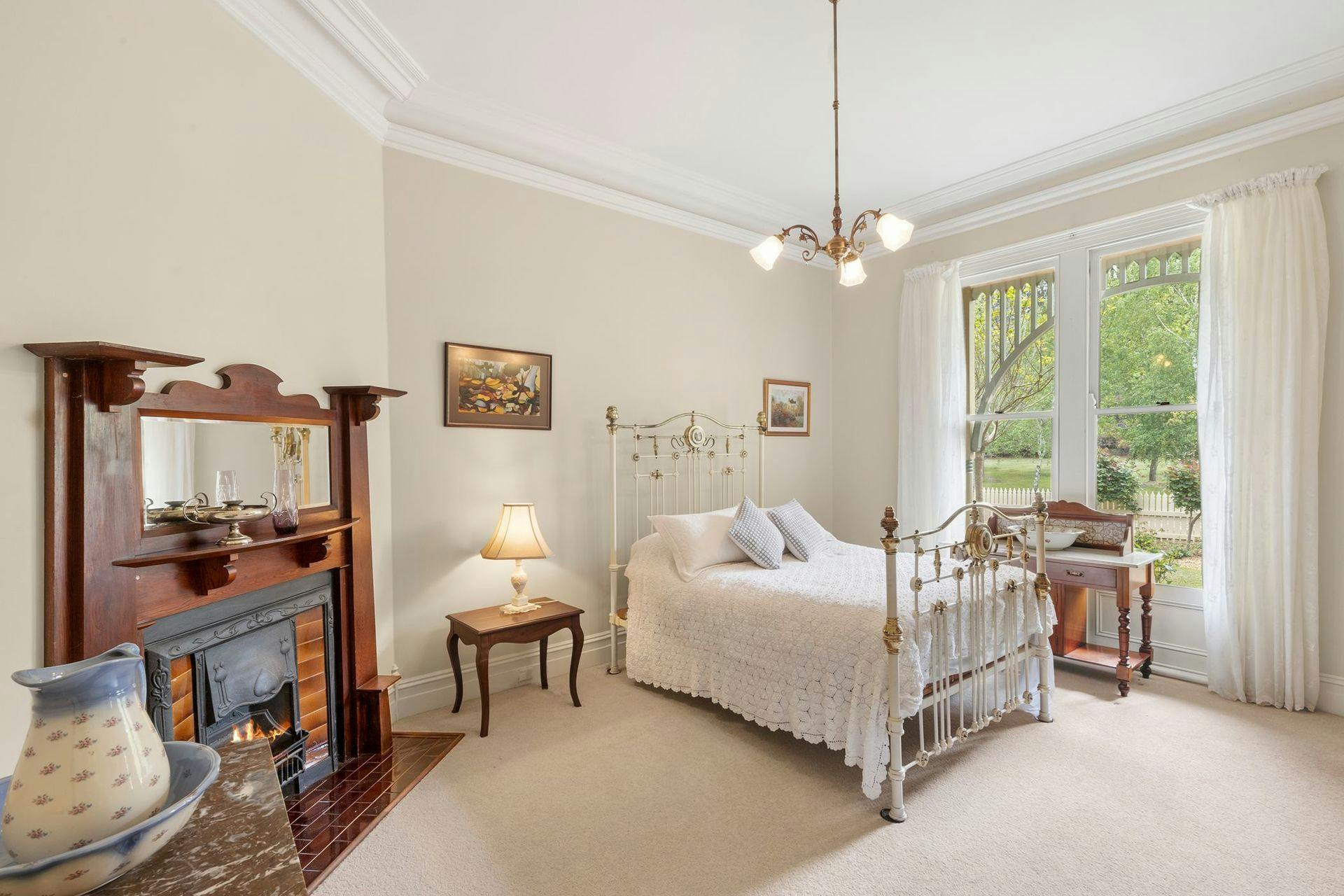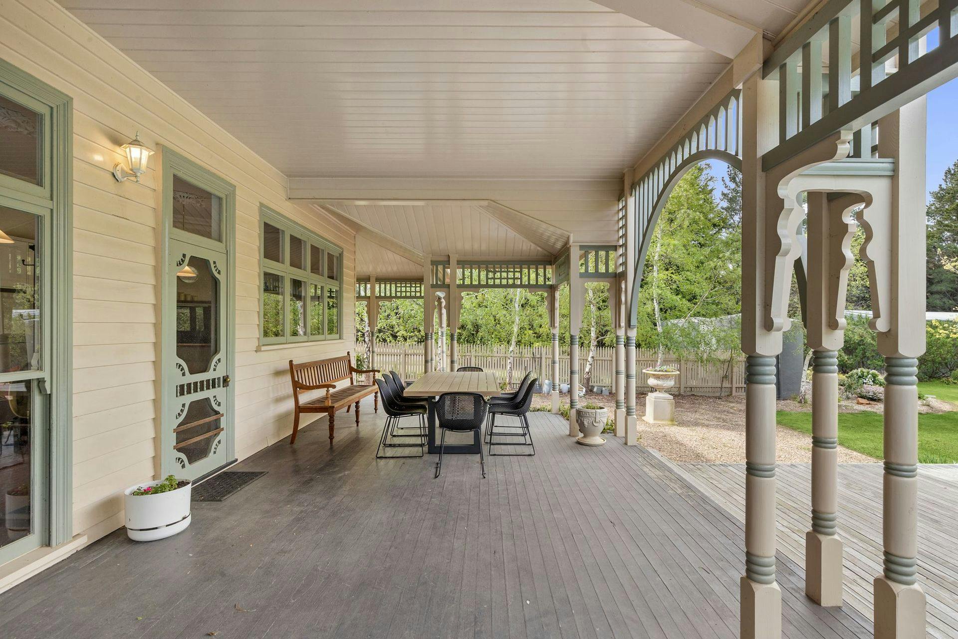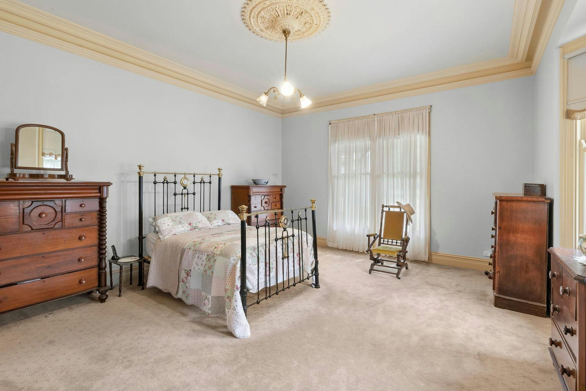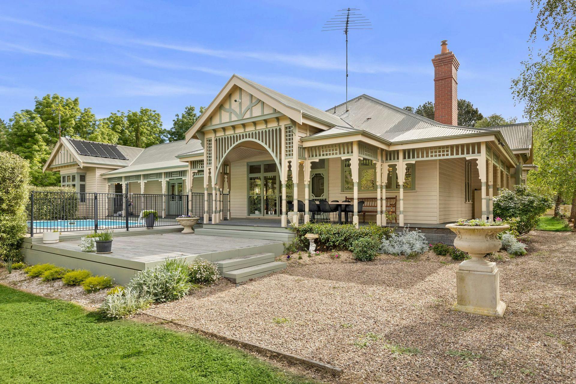 Beyond the whispering rows of towering cypress, Nunyara reveals itself as an elegant Edwardian-style homestead of grace, grandeur and rural serenity. Set on approximately 4.65ha -11.5 acres of lush parkland, this exquisite estate captures the essence of refined country living. Framed by a return verandah with intricate fretwork and terracotta chimney pots, the home radiates timeless charm. Inside, soaring ceilings, ornate plasterwork, corbelled arches and reclaimed church floorboards create an atmosphere rich in heritage and warmth.Generous accommodation includes five spacious bedrooms and a large study or sixth bedroom. The marble-tiled bathroom with clawfoot tub and brass fittings evokes classic luxury, complemented by an elegant ensuite. Living spaces include a formal lounge and expansive family room filled with natural light, while the provincial-style kitchen with 900mm cooker opens through French doors to a sunlit alfresco area and solar-heated, salt-chlorinated pool.