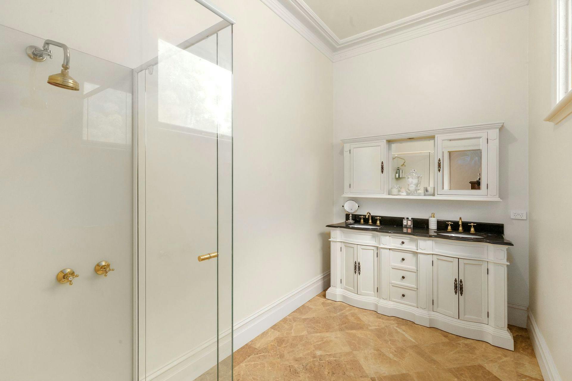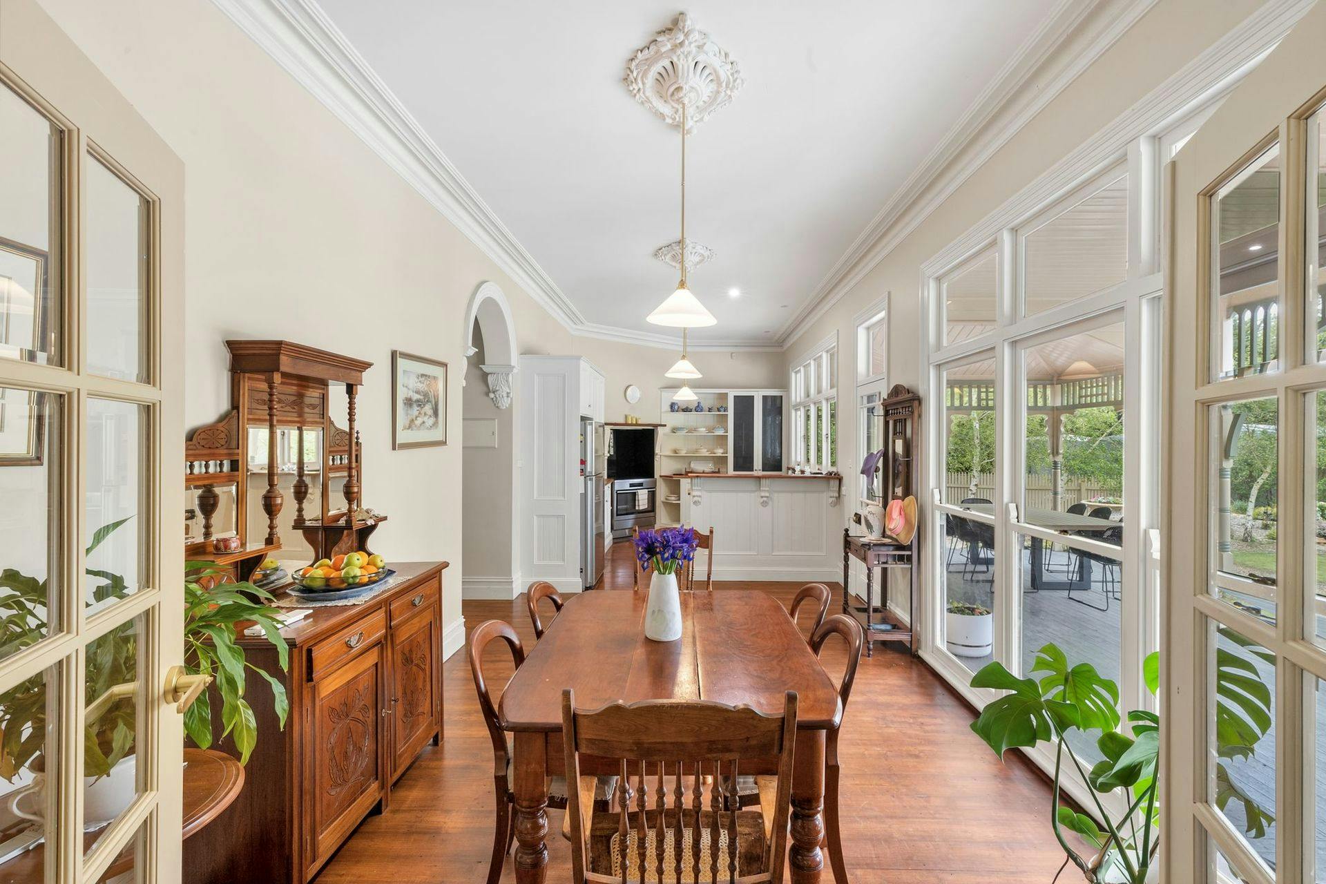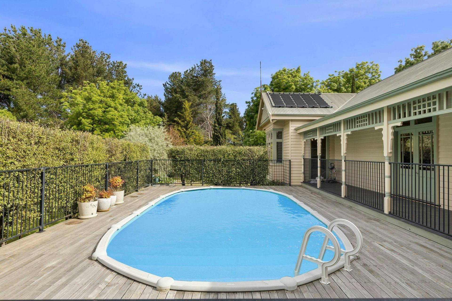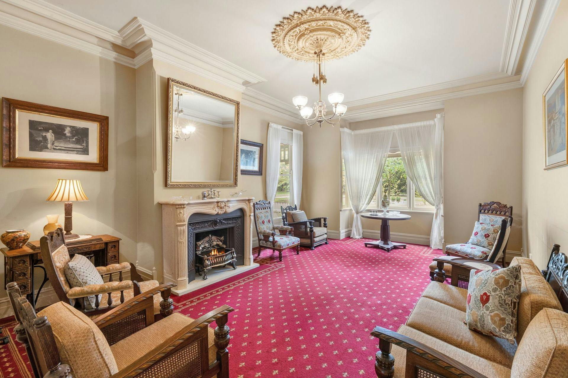 Beyond the whispering rows of towering cypress, Nunyara reveals itself as an elegant Edwardian-style homestead of grace, grandeur and rural serenity. Set on approximately 4.65ha -11.5 acres of lush parkland, this exquisite estate captures the essence of refined country living. Framed by a return verandah with intricate fretwork and terracotta chimney pots, the home radiates timeless charm. Inside, soaring ceilings, ornate plasterwork, corbelled arches and reclaimed church floorboards create an atmosphere rich in heritage and warmth.Generous accommodation includes five spacious bedrooms and a large study or sixth bedroom. The marble-tiled bathroom with clawfoot tub and brass fittings evokes classic luxury, complemented by an elegant ensuite. Living spaces include a formal lounge and expansive family room filled with natural light, while the provincial-style kitchen with 900mm cooker opens through French doors to a sunlit alfresco area and solar-heated, salt-chlorinated pool.