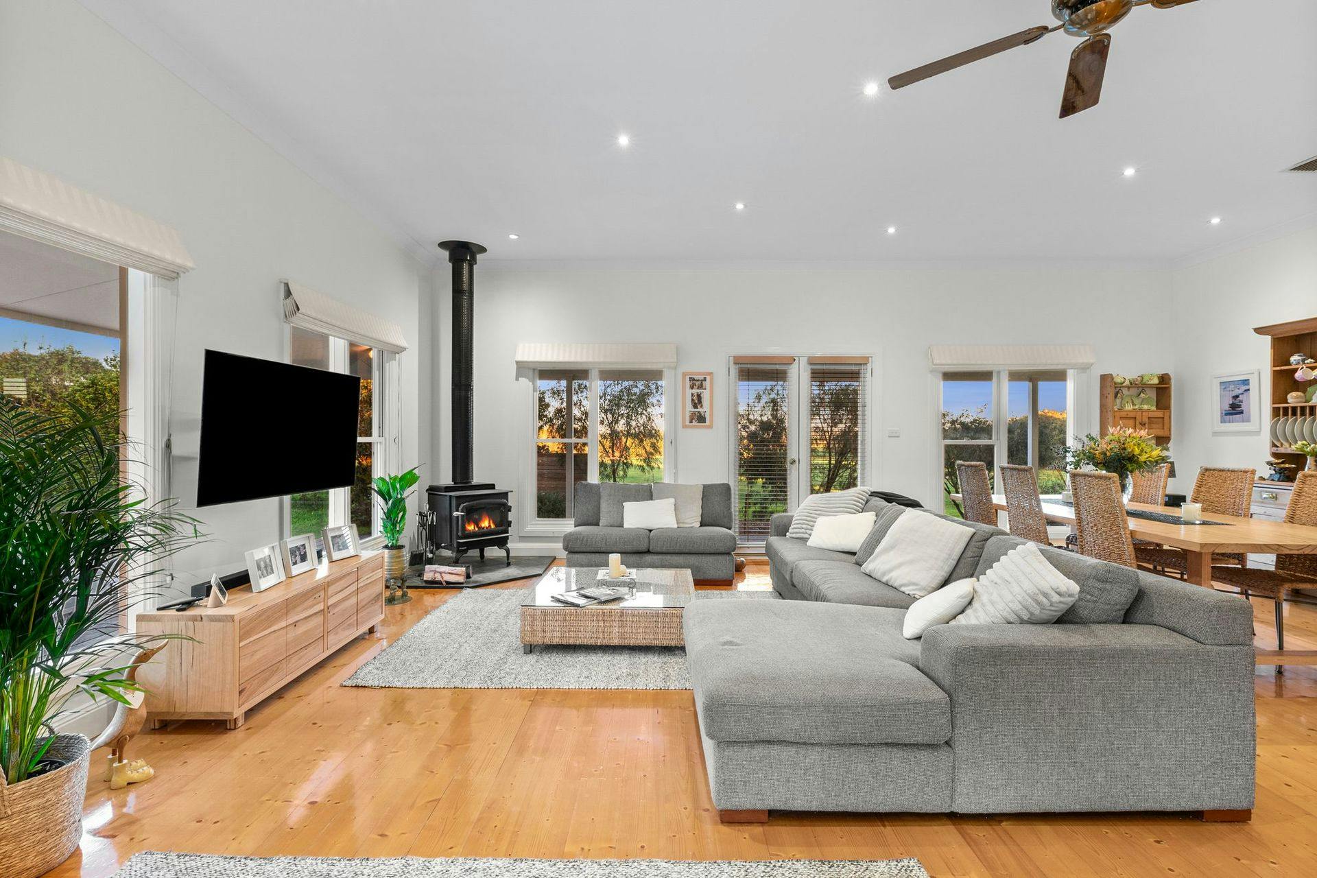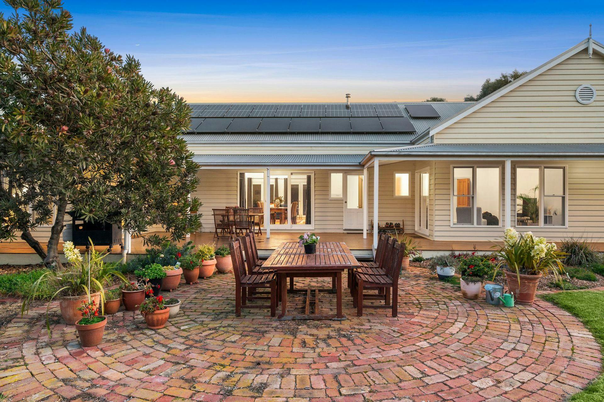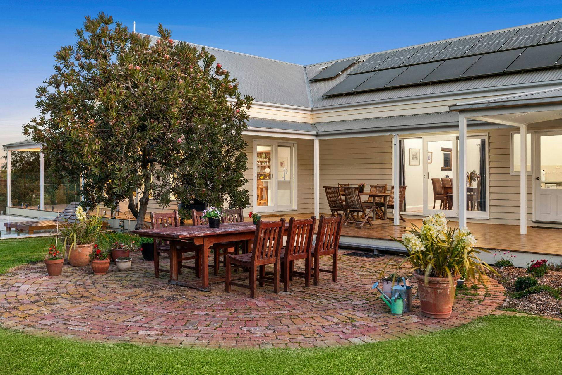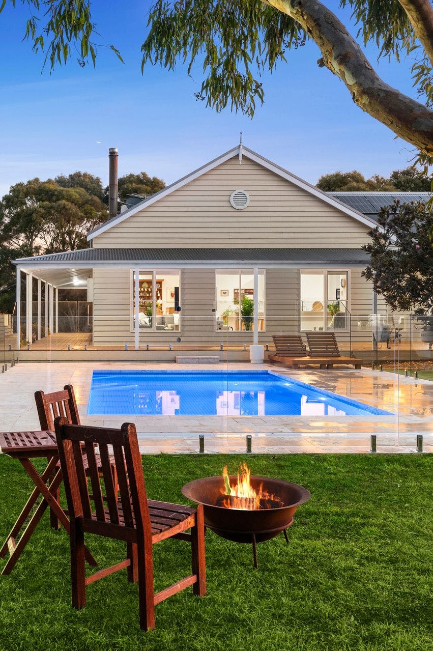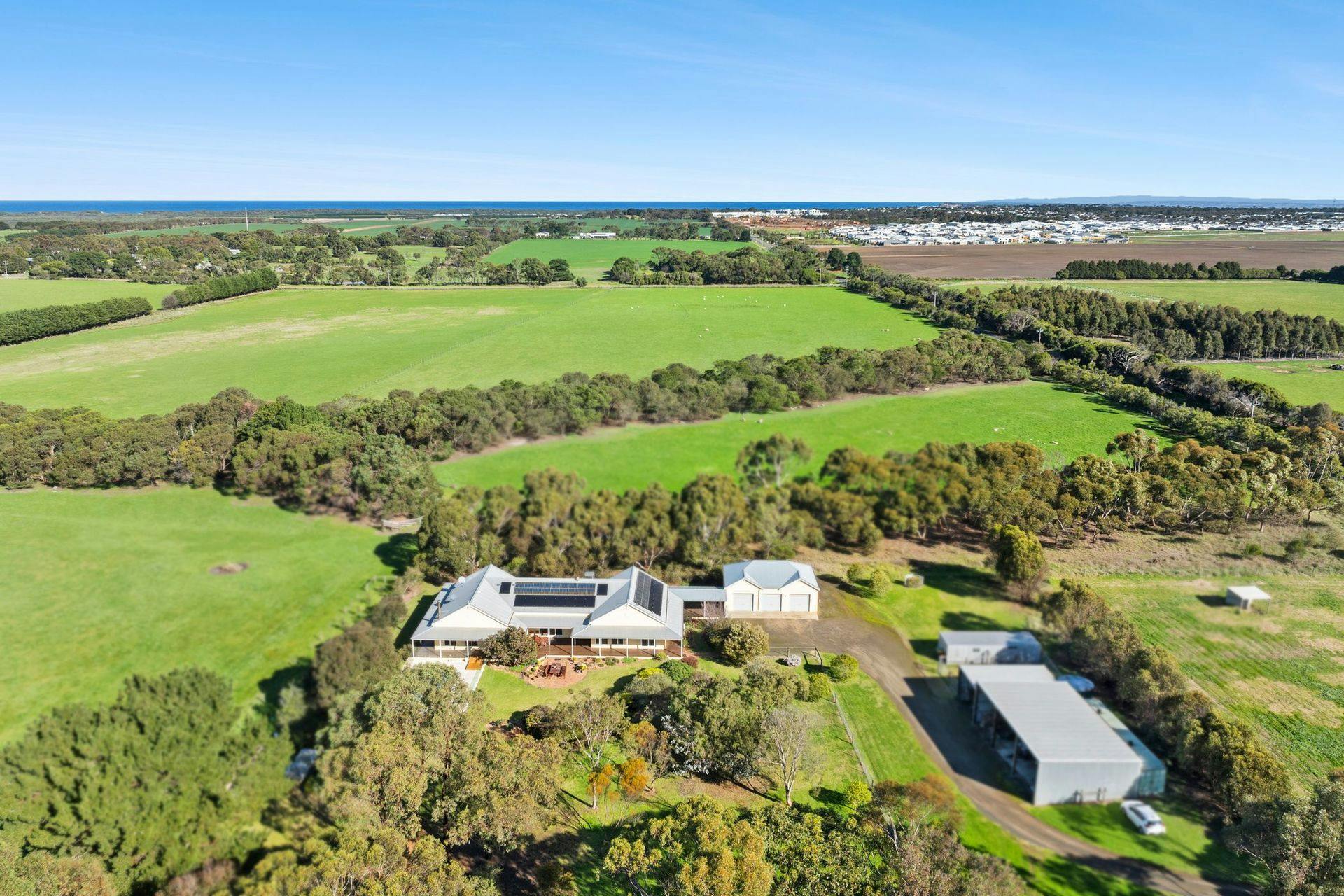 Peaceful, private, and perfectly positioned, this breathtaking 21.74 ha - 53.72-acre approx. property in the heart of the Bellarine Peninsula offers a rare lifestyle opportunity that beautifully blends coastal living with country charm. Framed by stunning landscape views and lush surroundings, the custom-designed residence features four spacious bedrooms plus a study, multiple living zones, and luxurious appointments throughout. With 10ft ceilings, eco-friendly inclusions, and an abundance of natural light, every element of the home is thoughtfully designed to offer comfort and elegance.At the heart of the home is a north-facing, open-plan living hub warmed by a wood fire, which opens to a wraparound verandah overlooking a sparkling in-ground pool. The gourmet kitchen, fitted with premium Siemens and Miele appliances, granite chip benchtops, and a walk-in pantry, is a dream for entertainers and everyday living alike.