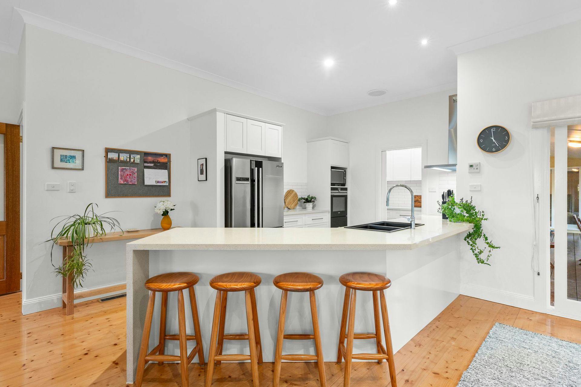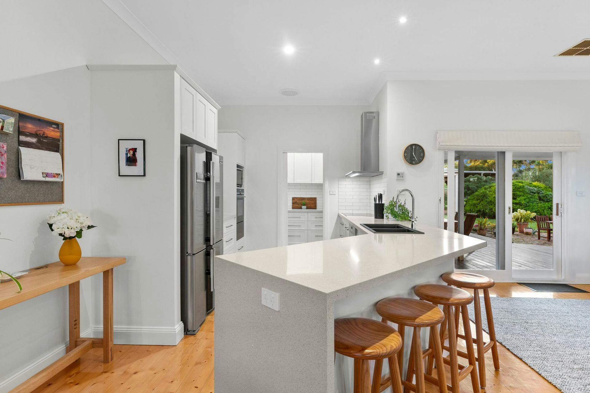 The home boasts a luxurious master suite with French door access to the verandah, a deluxe ensuite with twin vanities, and a walk-in robe. Three additional robed bedrooms are located in a separate wing, serviced by a beautifully updated central bathroom featuring Caesarstone benchtops and a freestanding bath.