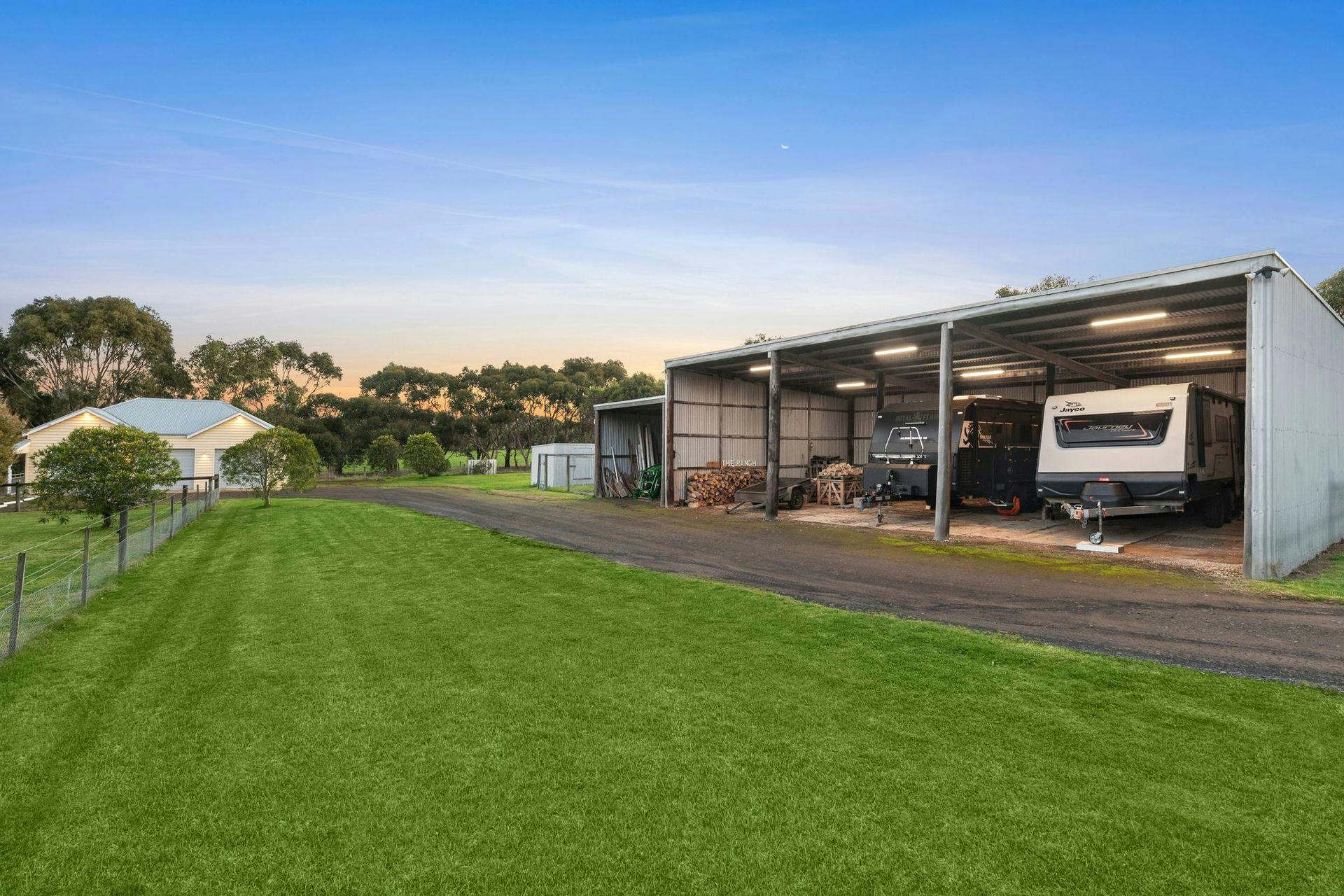 Beyond the home there are six water-fed paddocks, a dam, chicken coop, veggie gardens, and extensive shedding add functionality to the property's charm. Ideal for hobby farming, viticulture, sheep and cattle grazing or horse agistment, the land supports a true rural lifestyle just 5 minutes from Ocean Grove shopping and schooling, and within easy reach of wineries, beaches, and coastal towns like Point Lonsdale and Barwon Heads. Just over 20 minutes to Geelong and around 1.5 hrs to Melbourne.