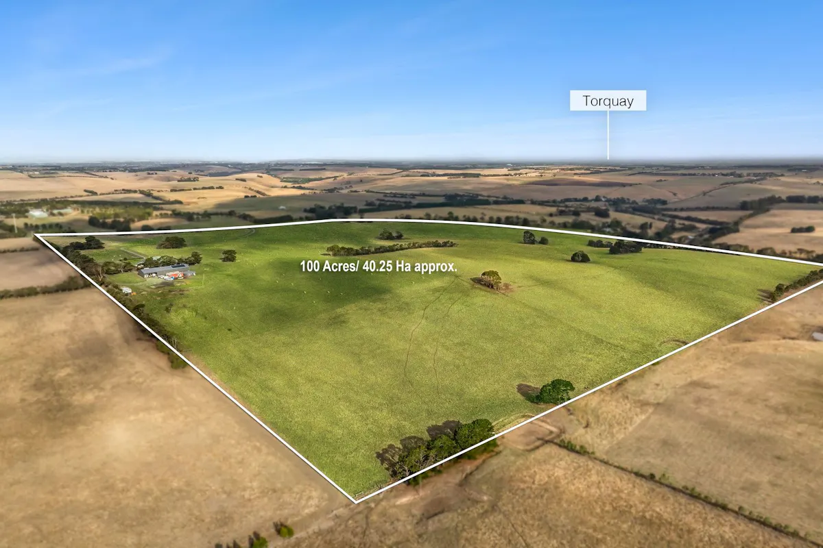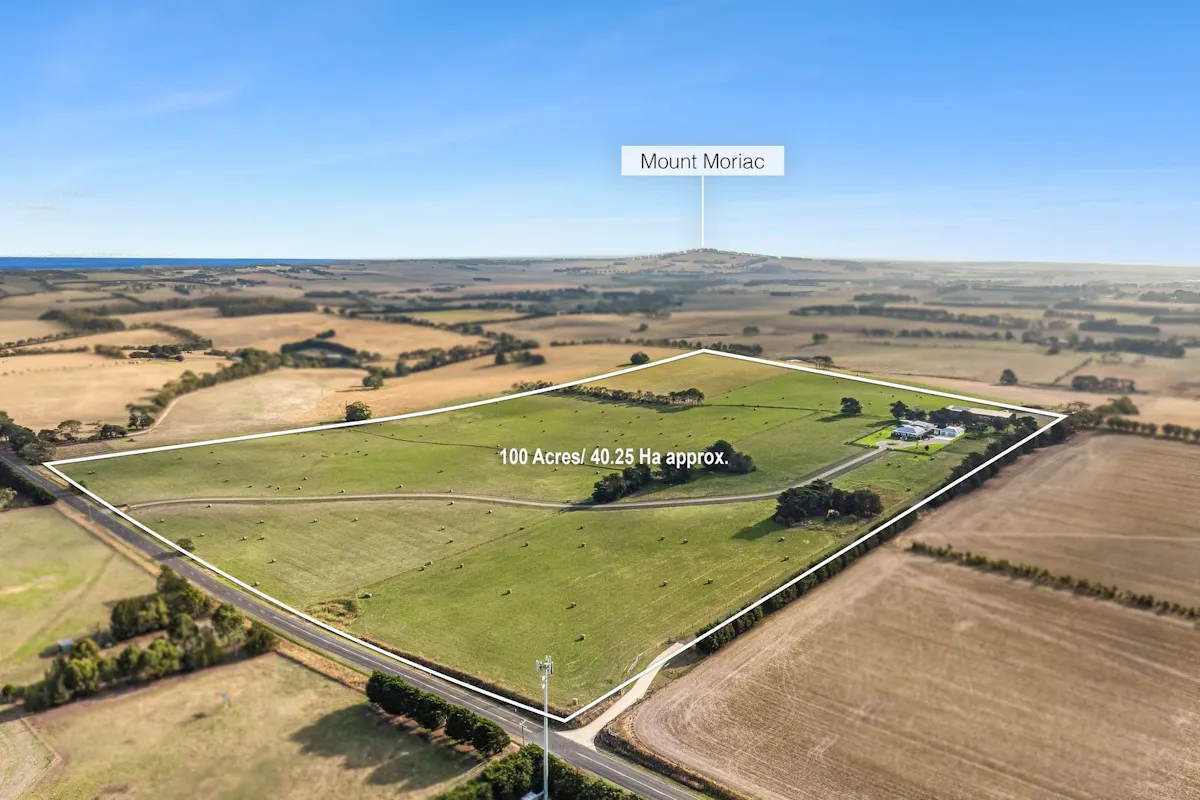 Situated on 40 ha – 100acres in the prestigious Barrabool Hills, this exceptional lifestyle residence offers a rare blend of scale, craftsmanship, and resort-style luxury. Privately set among rolling pastures and mature shelter belts, the home enjoys expansive views and a strong sense of seclusion, while being confidently positioned within its natural landscape. This is a fully realised rural property where refined design and luxurious liveability meet the quiet beauty of the countryside.The architecture is both striking and timeless, combining Old Geelong red brick, reclaimed timber posts from Melbourne wharfs, and expansive glazing. Distinct wings are connected by glazed breezeways, reinterpreting the traditional homestead in a contemporary form. High ceilings, bespoke joinery, timber floors, and plush wool carpets soften the accommodation areas, while polished concrete floors define the main living zones. Large windows throughout create a seamless connection between indoors and the surrounding Barrabool Hills landscape.